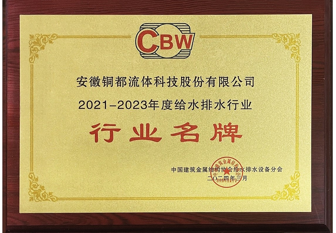 2021-2023年度給水排水行業(yè)行業(yè)名牌