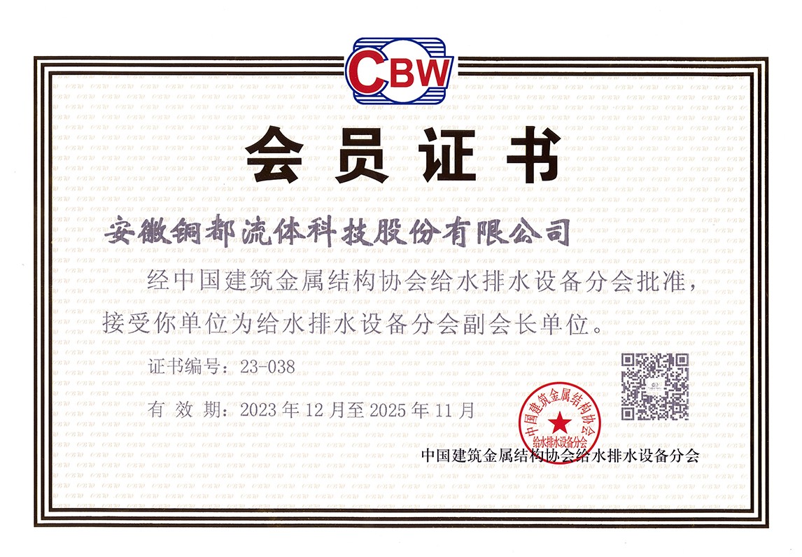 中國建筑金屬結構協(xié)會給水排水設備分會副會長單位