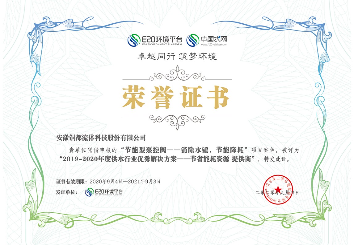 2019-2020年度供水行業(yè)優(yōu)秀解決方案提供商