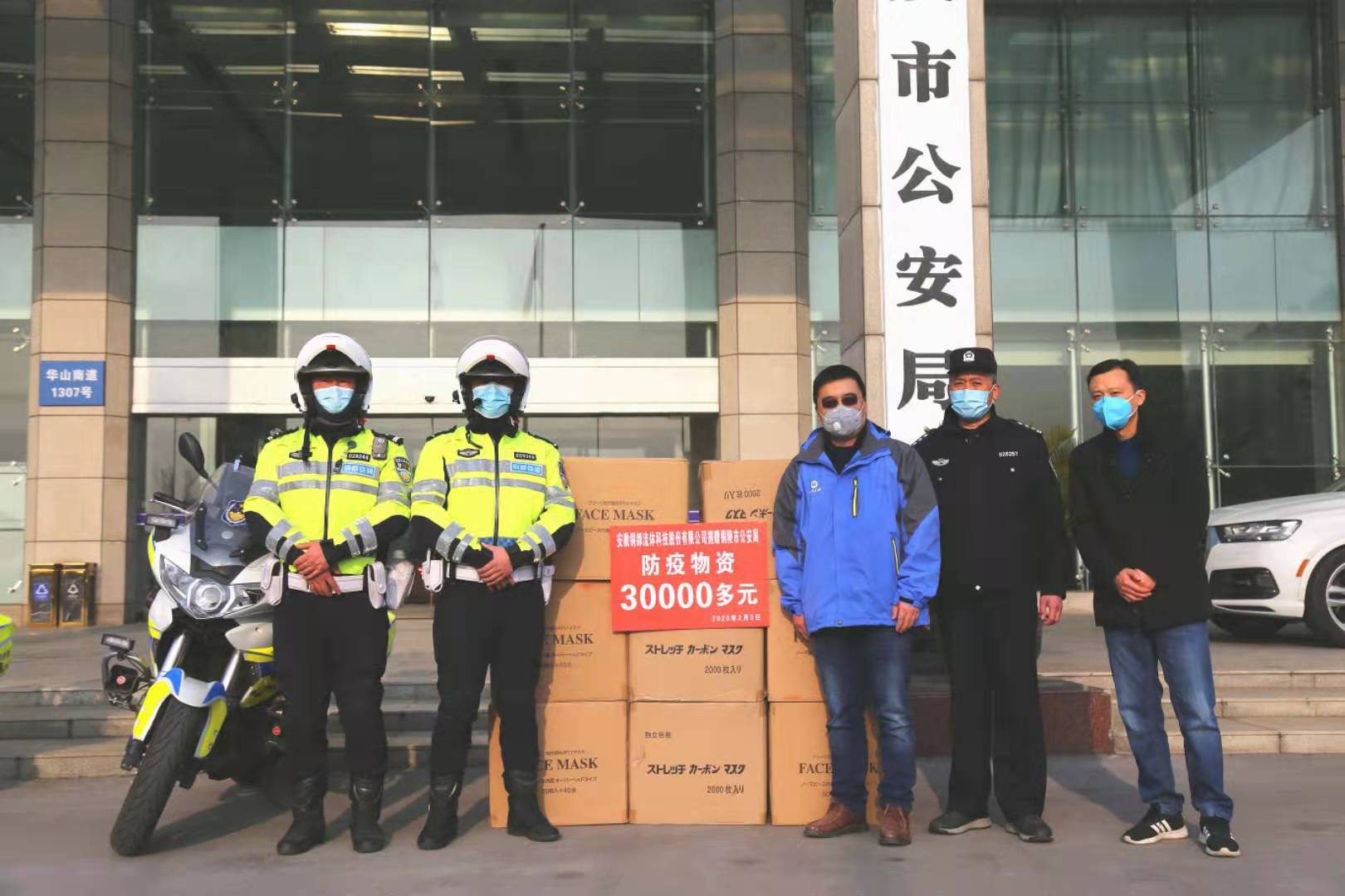 2月3日上午,銅都流體黨總支書記、副總經(jīng)理?xiàng)盍杞苡謳е鴥扇f(wàn)只口罩,慰問(wèn)一直奮斗在戰(zhàn)疫情一線的市公安局的干警和參與抗擊疫情一線的工作人員。