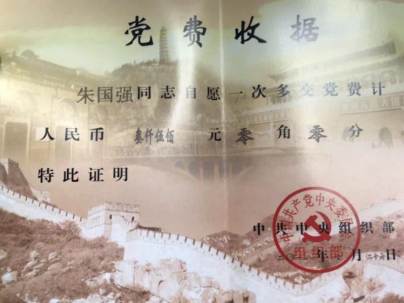 公司鉚焊車間員工、共產黨員朱國強同志,主動將自己獲得"銅陵好人"榮譽的獎勵金3500元,作為特殊黨費上交,受到中央組織部的充分肯定和贊揚,并頒發(fā)特殊《黨費收據》證書。