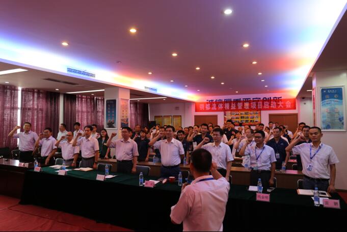 與會人員共同宣誓將精益生產(chǎn)項目持之以恒推進下去。標(biāo)志著公司精益生產(chǎn)項目正式啟航。